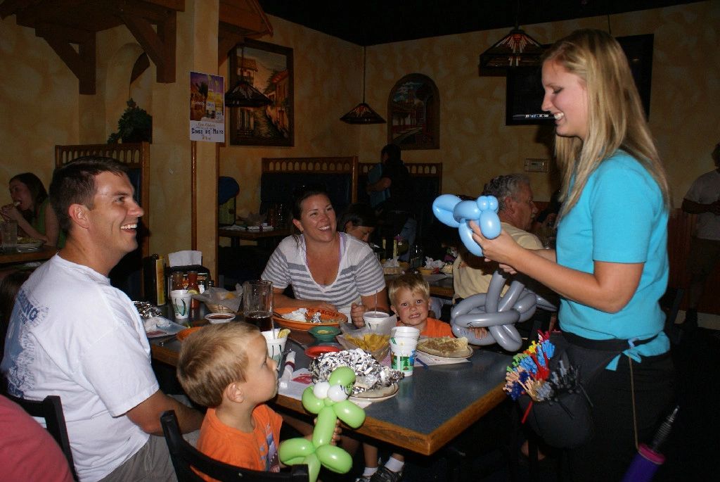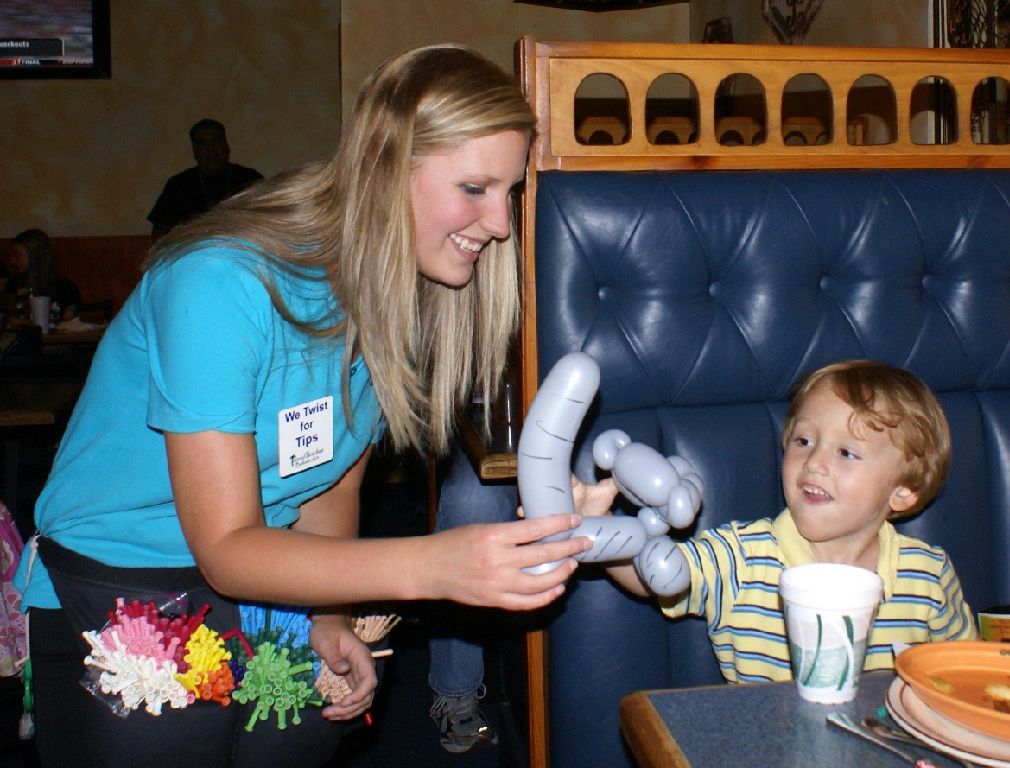 We create balloon sculptures at the table, keeping your guests entertained and making the time fly between order and food delivery! If you're on a wait, we can entertain the wait crowd to help you keep customers, who might otherwise leave. We understand how restaurants work and will never slow your table turns.